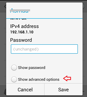 Tap on “Show advanced options” radio button.
